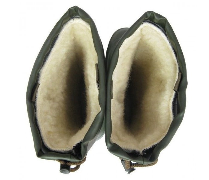 Внутренний, съемный сапожок из натуральной шерсти эффективно сохраняет тепло, в верхней части сапога расположена затяжка – шнурок предотвращающая попаданию воды и грязи внутрь сапога.