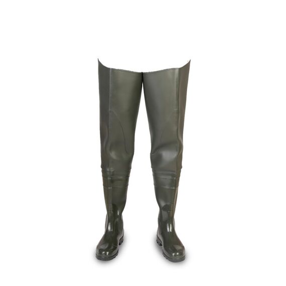 Сапоги изготовлены на базе высоких ПВХ сапог с толстой подошвой, к которым приварено литое голенище, которое обладает такой же плотностью и фактурой как и сапоги. Поэтому эта модель рыбацких сапог является особо прочной, и может эксплуатироваться в условиях, подвергающих изделие достаточно сильному механическому воздействию.