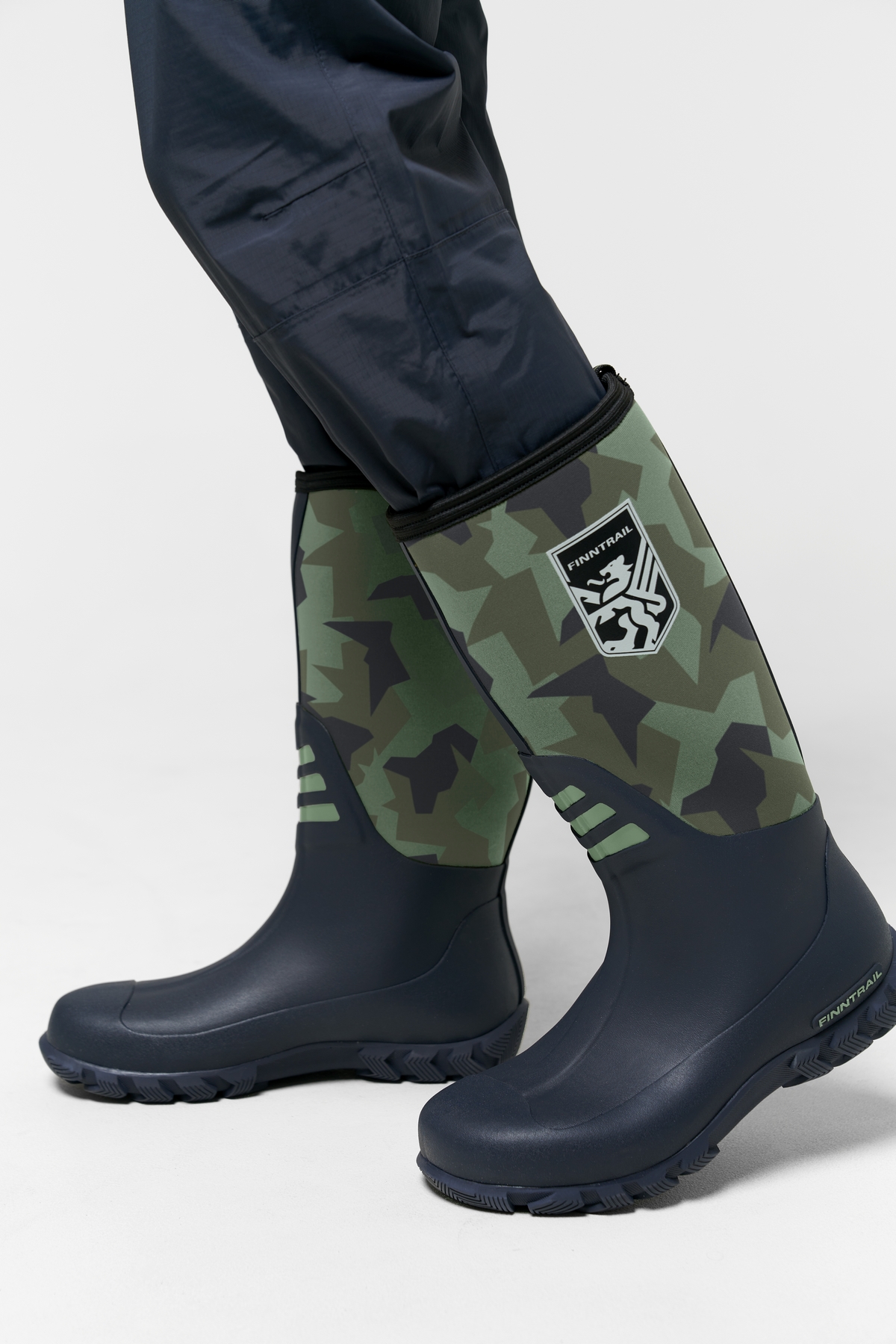 Прочные удобные сапоги для офф-роуд, рыбалки, охоты и экспедиций. Изготовлены из неопрена толщиной 5 мм и специальной подкладки, которая препятствует скоплению конденсата. Нижние части сапог дополнительно усилены резиновыми накладками. Подошвы с универсальными протекторами для пересеченной местности. В верхних частях голенищ есть дополнительные петли для удобного надевания сапог. Увеличенные износостойкие зоны усилений в нижних частях сапог обеспечивают хорошую поддержку голеностопов.
