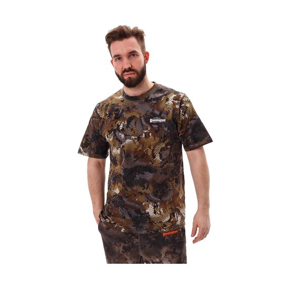 Футболка Remington — стильная модель, которую можно носить в повседневном варианте, во время активного отдыха, охоты, рыбалки, а также на спортивных занятиях. Рисунок на изделии нанесен с помощью современных технологий, поэтому после стирки цвета будут такими же яркими. Используемый материал футболки — «дышащий» хлопок. Благодаря такой ткани изделие приятно к телу, отлично подойдет тем, у кого чувствительная кожа, отмечается и высокая практичность таких моделей. Фасон футболки оставляет свободу любым движениям даже на тренировке. При любой физической нагрузке вы будете ощущать легкость и комфорт. Практичность, удобство, неоспоримая эстетичность модели сочетаются с ее универсальностью и многофункциональностью. Она может использоваться не только в качестве самостоятельного элемента, но также будет комфортным базовым слоем под теплой одеждой. Отметим, что изделие из хлопкового материала прослужит вам долгое время.