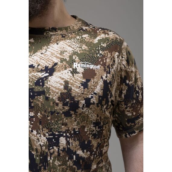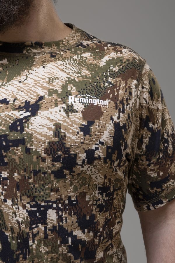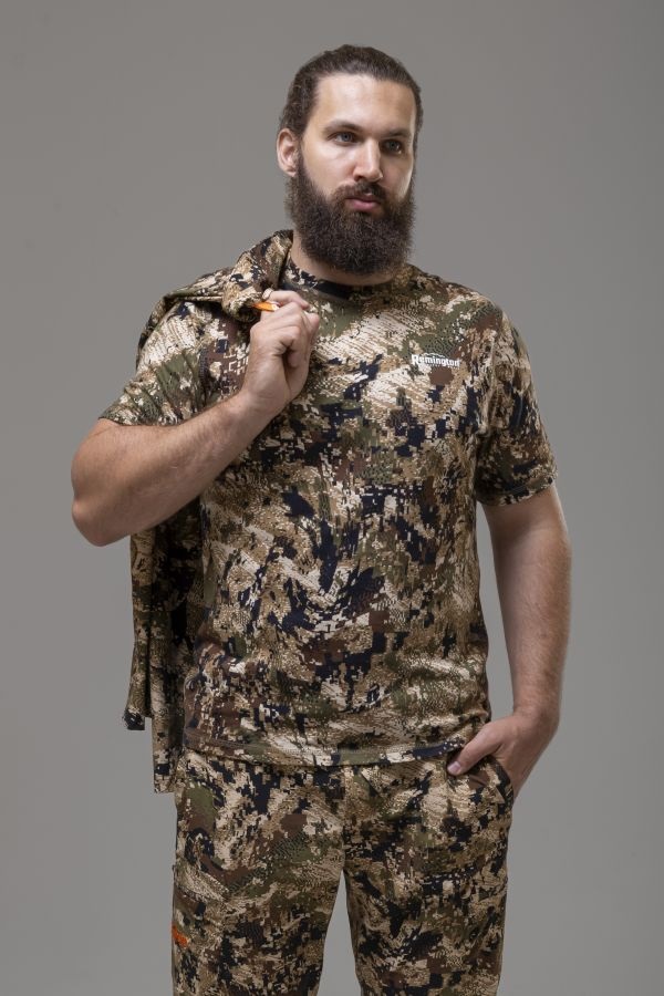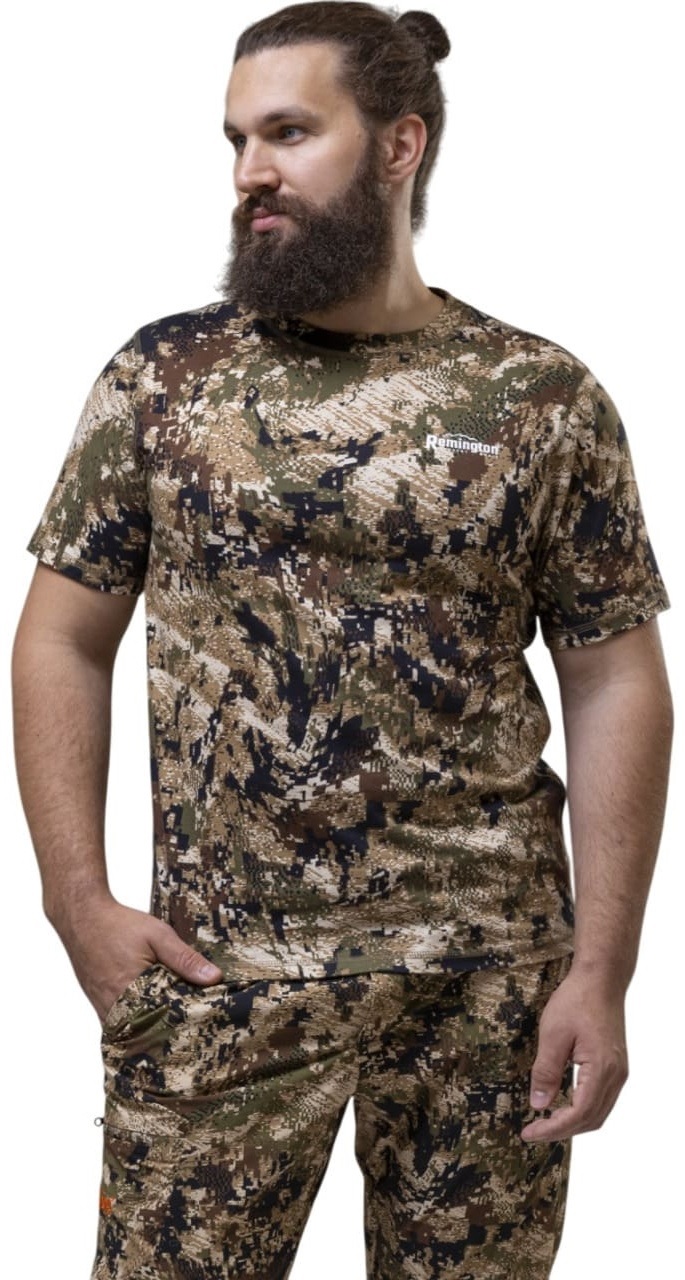 Футболка Remington — стильная модель, которую можно носить в повседневном варианте, во время активного отдыха, охоты, рыбалки, а также на спортивных занятиях. Рисунок на изделии нанесен с помощью современных технологий, поэтому после стирки цвета будут такими же яркими. Используемый материал футболки — «дышащий» хлопок. Благодаря такой ткани изделие приятно к телу, отлично подойдет тем, у кого чувствительная кожа, отмечается и высокая практичность таких моделей. Фасон футболки оставляет свободу любым движениям даже на тренировке. При любой физической нагрузке вы будете ощущать легкость и комфорт. Практичность, удобство, неоспоримая эстетичность модели сочетаются с ее универсальностью и многофункциональностью. Она может использоваться не только в качестве самостоятельного элемента, но также будет комфортным базовым слоем под теплой одеждой. Отметим, что изделие из хлопкового материала прослужит вам долгое время.