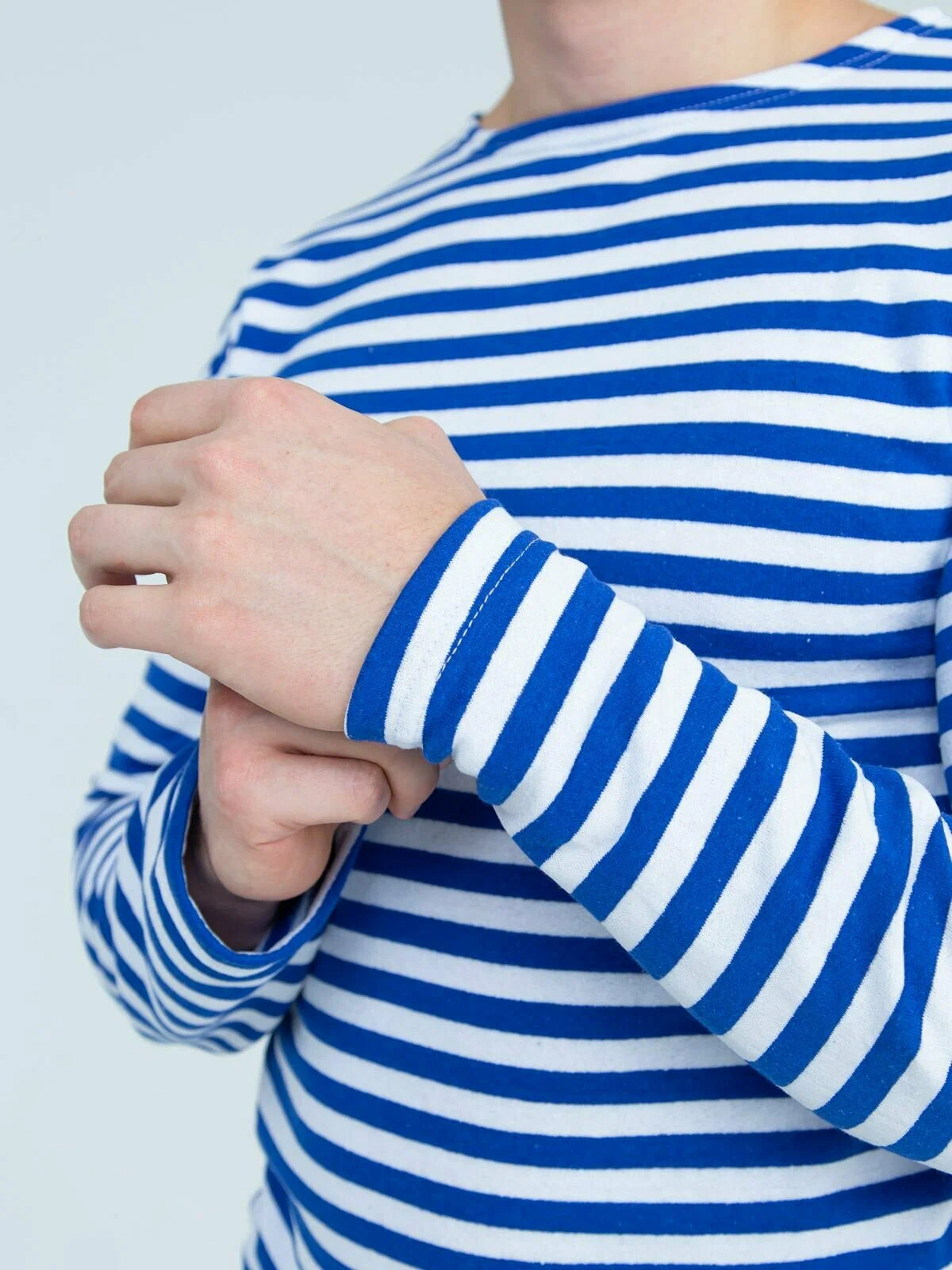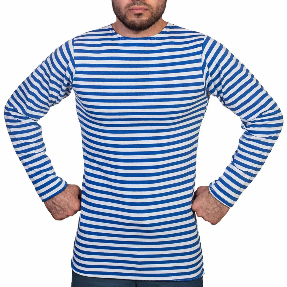 Тельняшка летняя длинный рукав в голубую полосу.
