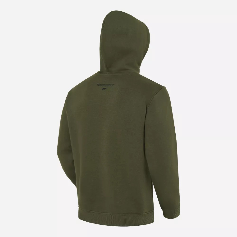надёжно защищает от ветра и холода. Пушистый начёс (295 г/м2) на внутреннем слое обеспечивает дополнительное тепло, придавая ощущение мягкости и комфорта. Функциональный дизайн модели объединяет в себе продуманные детали, черный цвет с оригинальным принтом на тему езды по бездорожью, а также яркий акцент в виде жаккардового флажка с уникальными дизайном. Объемный силуэт позволяет надевать толстовку поверх футболок или рубашек. Благодаря удобному накладному карману личные вещи будут всегда находиться под рукой. Капюшон с подкладкой и регулируемым шнурком обеспечивает надёжную фиксацию на голове и не сползает во время движения. На спине дополнительно размещён небольшой логотип FINNTRAIL. Эластичный пояс и манжеты толстовки создают максимально комфортную посадку.