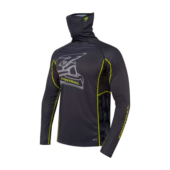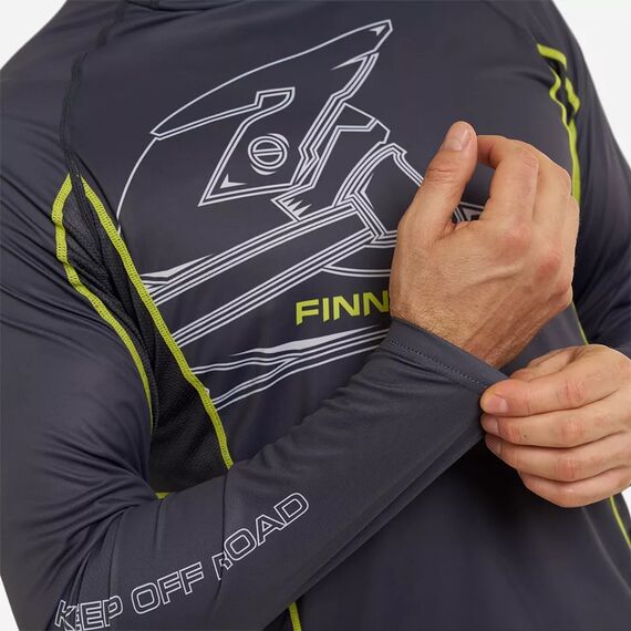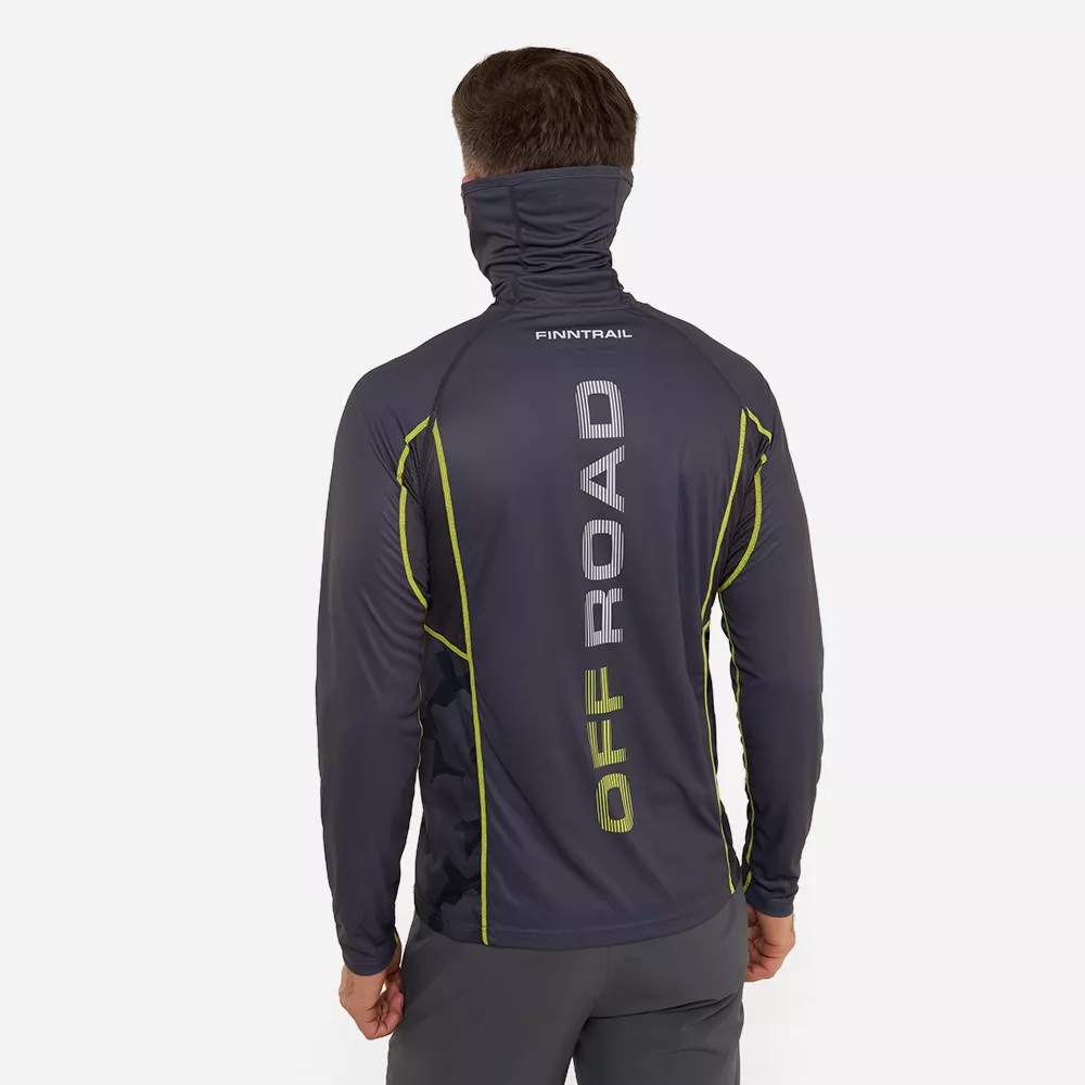 Новая модель, которая определенно понравится любителям бездорожья. Прочная и одновременно лёгкая ткань, а главное ― встроенная маска защитят от солнца, ветра и назойливых насекомых. Стильный и оригинальный лонгслив будет прекрасно смотреться в любых условиях во время активного отдыха.Дышащая и быстросохнущая ткань с коэффициентом защиты от ультрафиолета UPF 50 укроет от воздействия вредного солнечного излучения, а встроенная маска предотвратит попадание грязи и пыли на лицо и шею. Материал лонгслива изготовлен с использованием технологии от насекомых, а также обработан антибактериальным покрытием, препятствующим появлению неприятных запахов. Дизайн модели сочетает в себе серый цвет и уникальный принт для любителей бездорожья с фирменным логотипом FINNTRAIL. Силиконовые вставки на затылочной части помогут зафиксировать встроенную маску на месте и предотвратят скольжение во время движения. Наличие плоских швов предупреждает натирание и раздражение кожи во время активных тренировок или поездок. Рукав реглан обеспечивает оптимальную посадку и не ограничивает движения рук.
