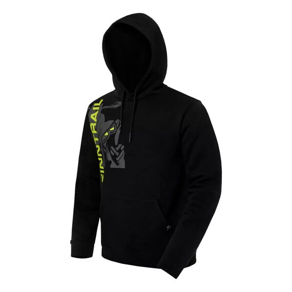 надёжно защищает от ветра и холода. Пушистый начёс (295 г/м2) на внутреннем слое обеспечивает дополнительное тепло, придавая ощущение мягкости и комфорта. Функциональный дизайн модели объединяет в себе продуманные детали, черный цвет с оригинальным принтом на тему езды по бездорожью, а также яркий акцент в виде жаккардового флажка с уникальными дизайном. Объемный силуэт позволяет надевать толстовку поверх футболок или рубашек. Благодаря удобному накладному карману личные вещи будут всегда находиться под рукой. Капюшон с подкладкой и регулируемым шнурком обеспечивает надёжную фиксацию на голове и не сползает во время движения. На спине дополнительно размещён небольшой логотип FINNTRAIL. Эластичный пояс и манжеты толстовки создают максимально комфортную посадку.