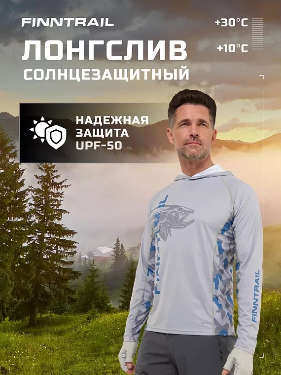 Лонгслив FINNTRAIL Wave Big Fish создан для тех, кто ценит комфорт и свободу движений. Защита от солнца UPF 50