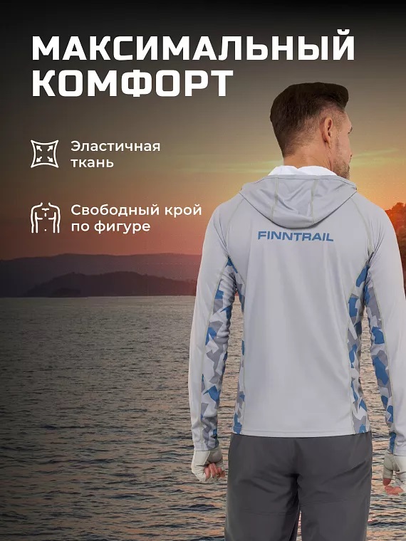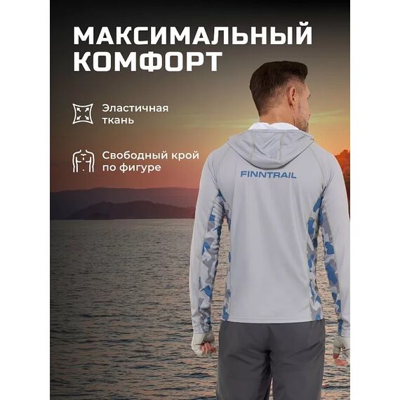 и специальная пропитка против запахов и насекомых делают его незаменимым спутником для рыбалки и активного отдыха. Встроенный капюшон и плоские швы обеспечивают максимальный комфорт и защиту, куда бы вы ни отправились. Ощутите уверенность и наслаждайтесь каждым моментом в лонгсливе FINNTRAIL.