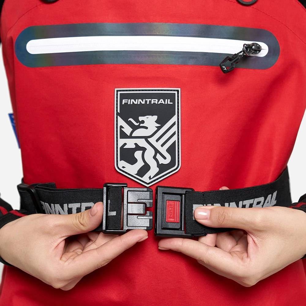 - Эластичные подтяжки и ремень с логотипами FINNTRAIL на замке YKK позволяют быстро регулировать посадку по фигуре.