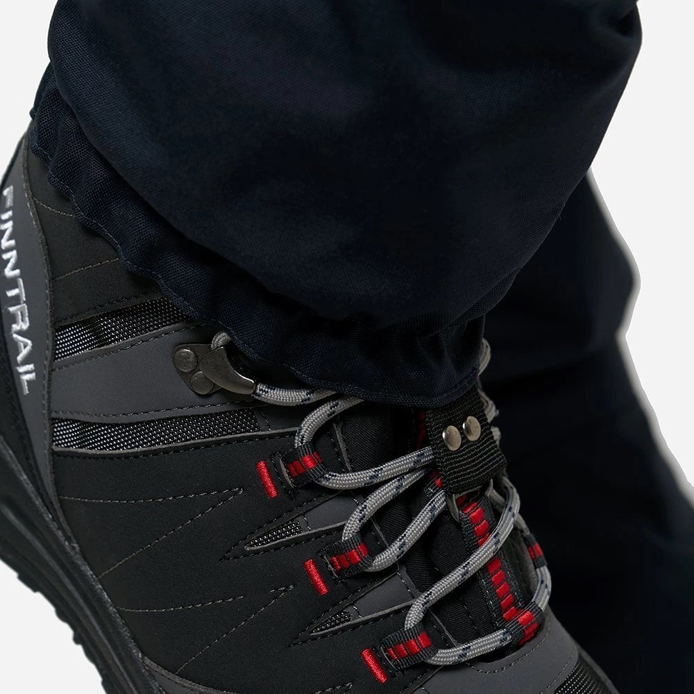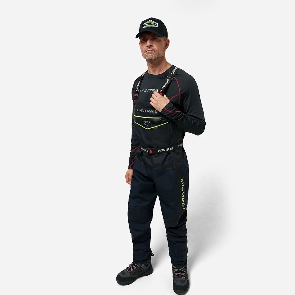 - Эластичные подтяжки и ремень с логотипами FINNTRAIL на замке YKK позволяют быстро регулировать посадку по фигуре.