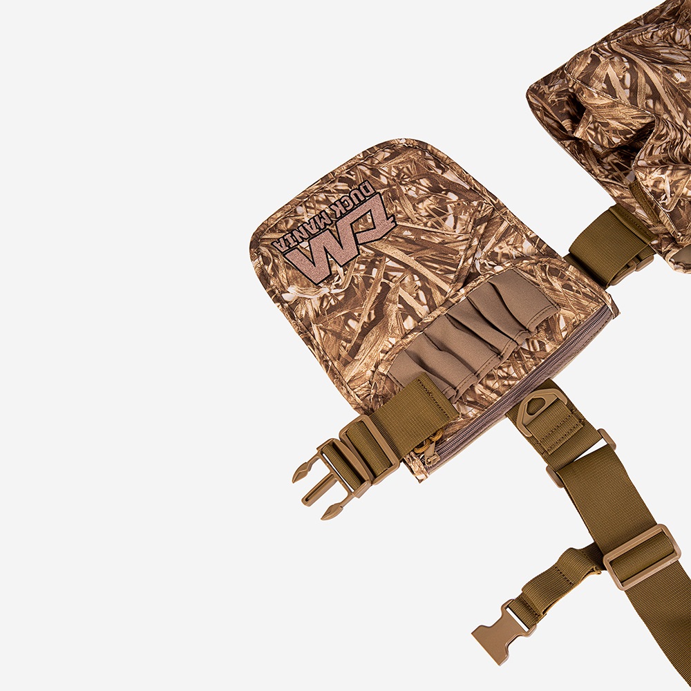 Жилет-разгрузка ПРОФИ Duck Mania получил высшие оценки у профессиональных охотников. Отлично подойдет для как для ходовой охоты, так и для охоты на утку. В задний карман-мешок для дичи с влагостойкой отделкой PU помещается заяц целиком или несколько уток. Конструкция позволяет закидывать дичь одной рукой без необходимости снимать жилет. В холодное время года можно погреть руки в карманах утепленных длинноворсовым флисом. Также с каждой стороны предусмотрены патронташи и емкие карманы для патронов с люверсами для вывода влаги.