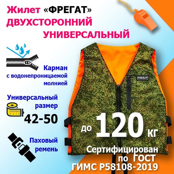 Страховочный жилет Фрегат F/GF/U до 120 кг (р. 42/50) универсальный двухсторонний