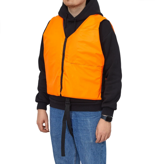 Универсальная подгонка по размеру осуществляется с помощью широких резинок, расположенных по бокам жилета.