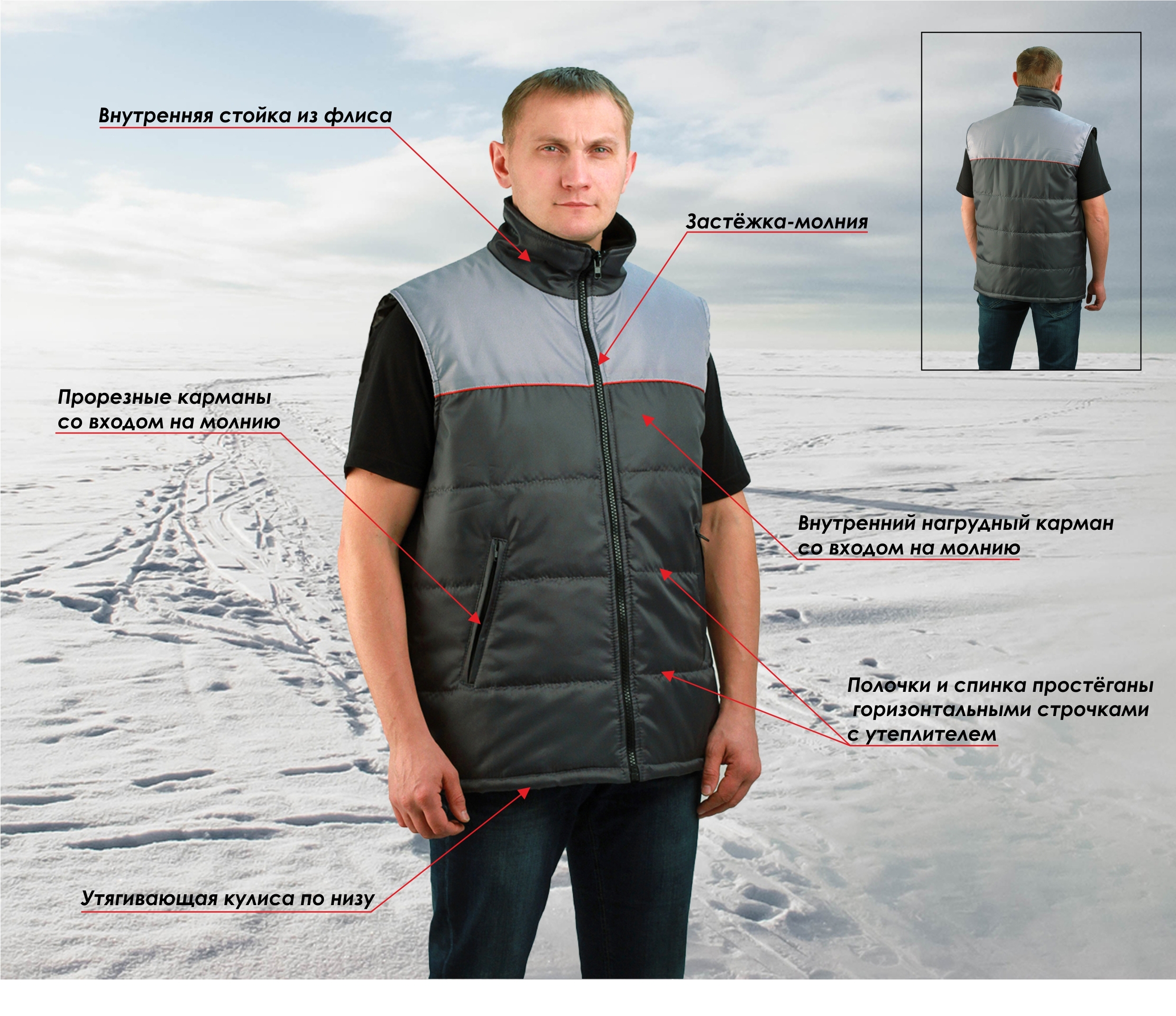 - Синтепон пл.100 г/м2: в жилете 2 слоя