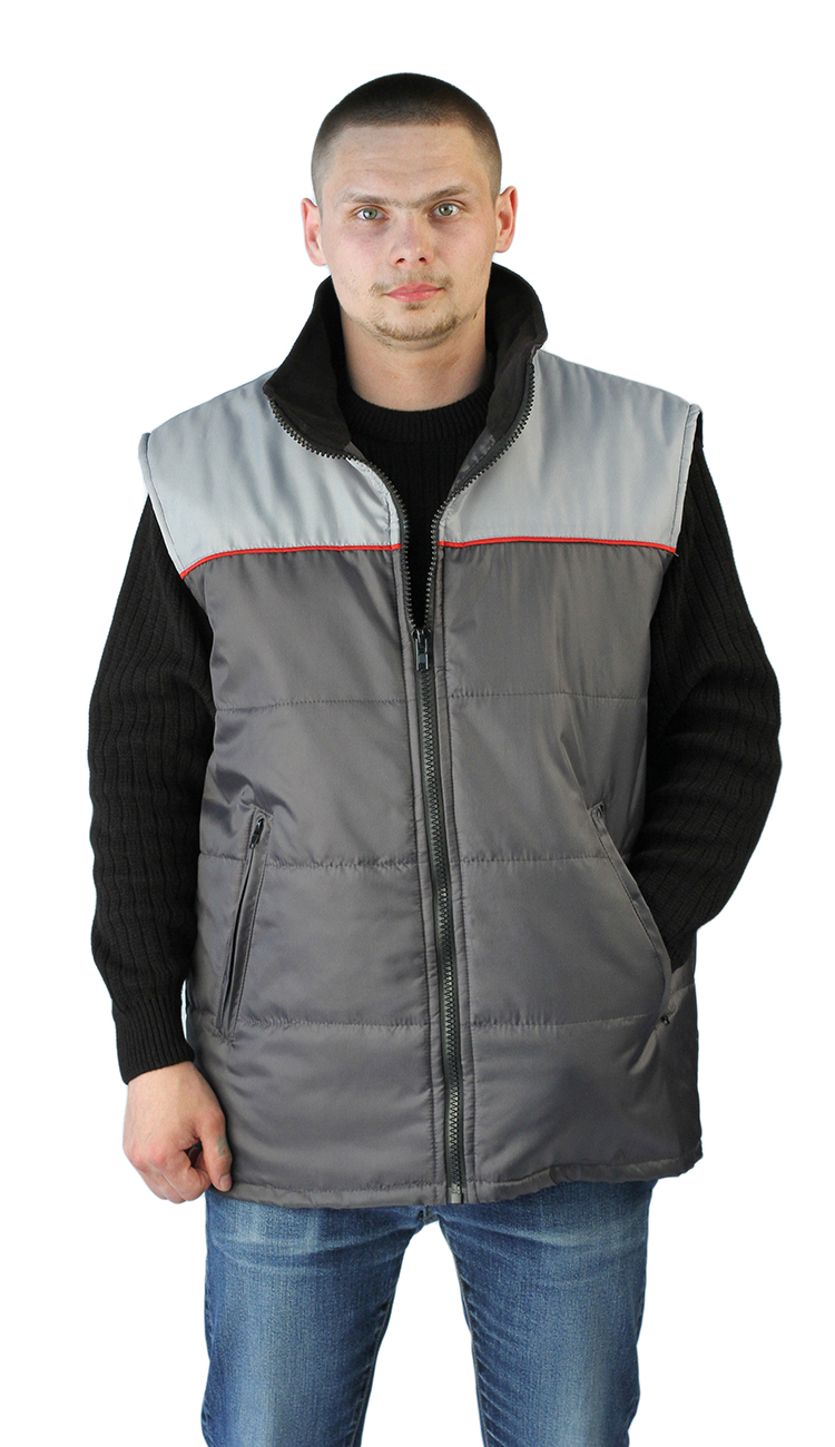 Жилет утепленный "Фаворит" т.серый со св.серой кокеткой, ткань оксфорд