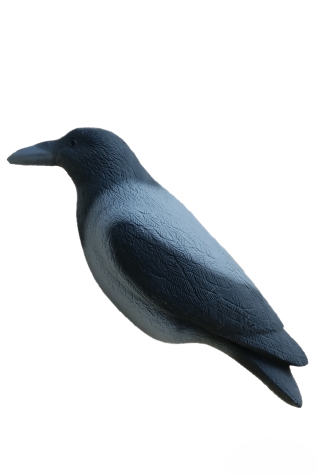Эффективно применяется на гусиной и утиной охоте, высаживается в непосредственной близости от засидки, на месте с хорошим обзором. Чучело вороны символизирует спокойствие и отсутствие опасности. В нижней части корпуса имеется отверстие для её установки на ветках или колышке.