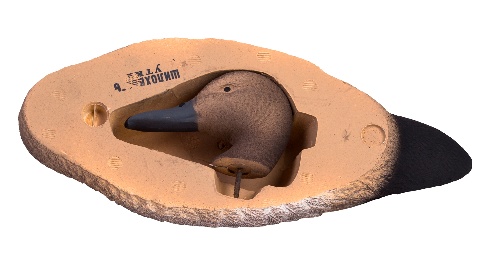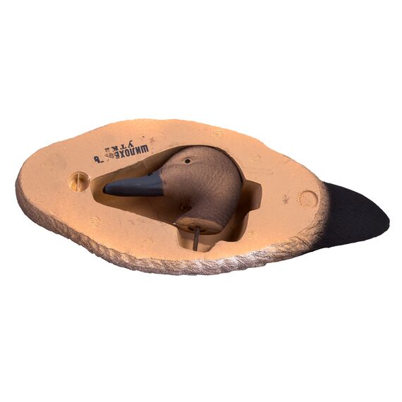 Чучело утки из вспененного полистирола. Окрашено вручную. Конструкция изделия позволяет прятать голову чучалки в нишу нижней части корпуса при переноске (транспортировке, хранении), что делает его более компактным и предохраняет от повреждений.