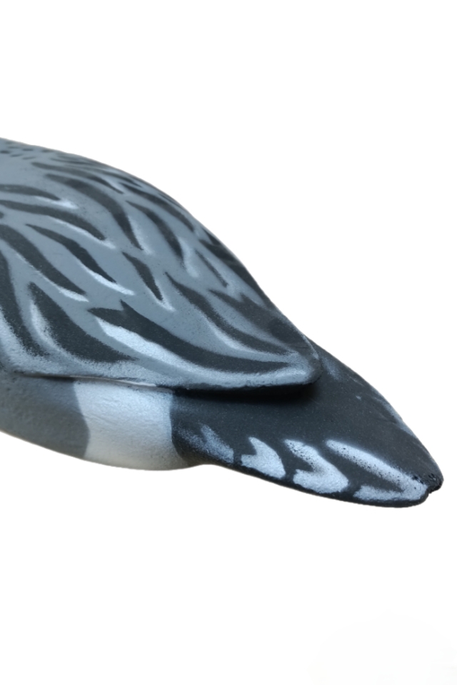 Разработанная специальная конструкция тела чучела позволяет прятать голову в корпус при переноске, что делает чучело более компактным.