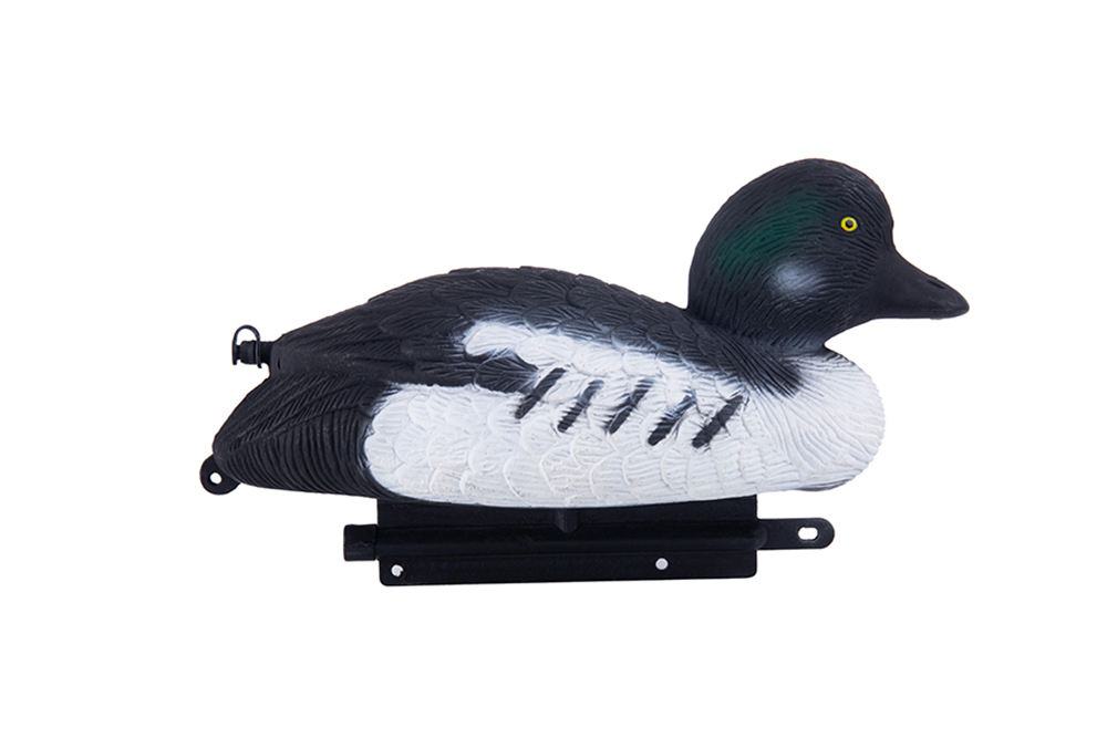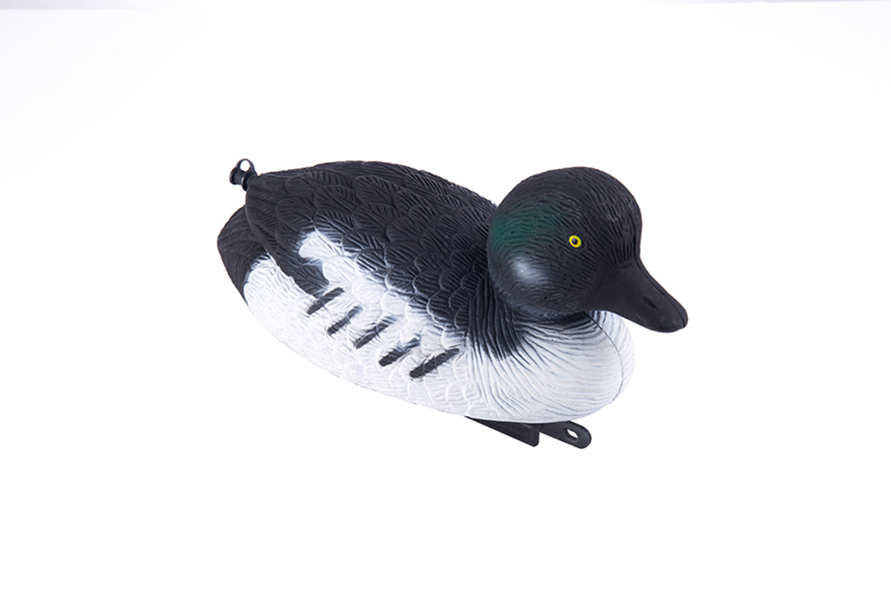 Гоголь селезень. Уникальные утиные чучела Softplast® производятся из мягкого пластика, могут сминаться для компактной транспортировки. Отличительная особенность этих чучел необыкновенная реалистичность и высокая прочность наряду с компактностью и низким весом. Чучалка не является надувной и не боится попадания дроби, для защиты от попадания воды через отверстие для выхода воздуха предусмотрен закрывающийся клапан.