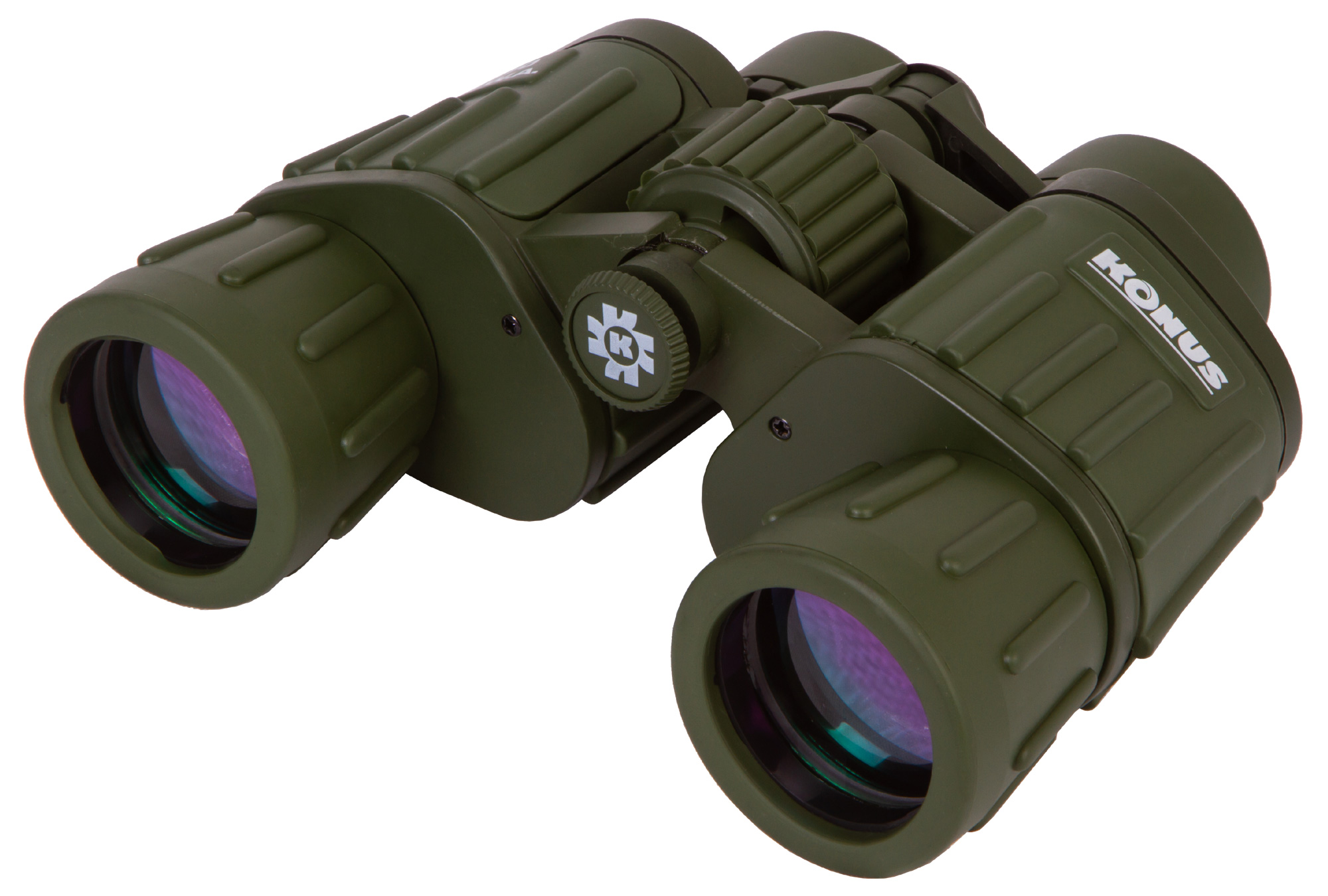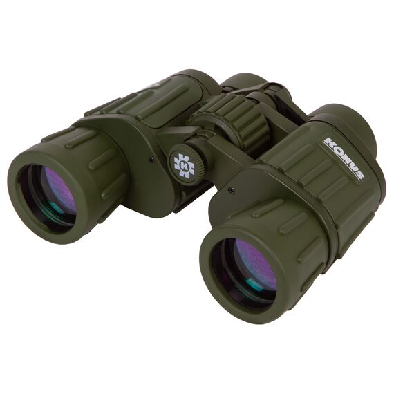 Представленный здесь бинокль от разработчиков итальянского бренда Konus удобен для панорамного обзора, может применяться при слабой освещенности, при этом дает четкое, сочное, неискаженное изображение. Модель Konusarmy 8x42 WA рекомендована для охотников, различных полевых наблюдений, а также рыбаков и туристов. Он сконструирован на основе Порро-призмы. Оптика произведена из BaK-4 - высококачественного стекла. На линзах предусмотрено несколько слоев просветления. Объективы диметром в 42 мм и выходной зрачок 4,5 мм обеспечивают хорошую видимость даже в сумеречное время. Модификация широкоугольная: при удалении в 1 км линейная видимость равна 140 м. Так как корпус обрезинен, его комфортно держать, но при длительном использовании можно установить прибор на фотоштатив. Разработчики предусмотрели стандартное крепление.