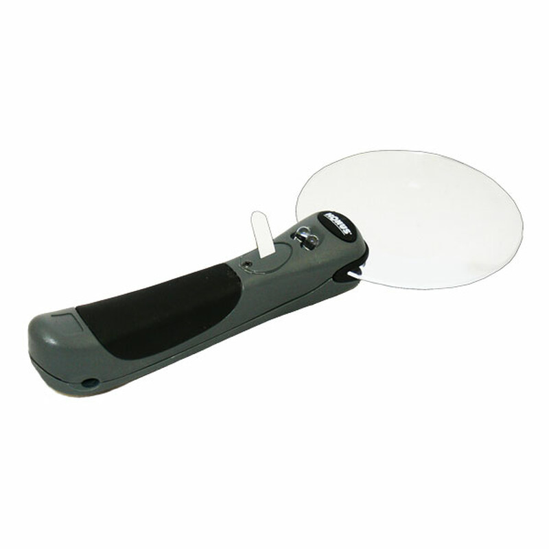 Лупа с подсветкой. Пластиковая ручка. Высококачественное стекло. Питание лампочки от 3-х LR1130.