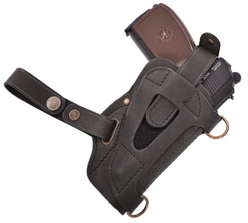 Кобура «Патруль» оперативная горизонтальная ПМ Серия Люкс Черная кожа (III) Подвесная система двух плечевая