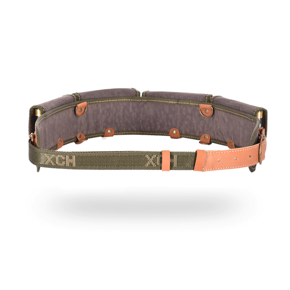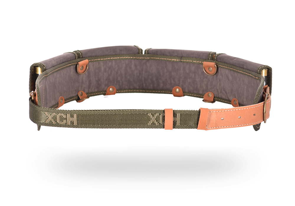 Изготовлен в традиционной форме из специальной ткани и натуральной кожи. Патронташ надежно держит 24 патрона в лузах. В производстве используется итальянская фурнитура, которая практически не дает бликов. Раскрой производится на специальном оборудовании, что гарантирует высокое качество изделий. Для производства используется специальная ткань и элитная кожа натурального сквозного прокраса. Данные материалы не боятся влаги, ружейного масла и солнечных лучей. Изделия, выполненные из этих материалов, будут служить долгие годы, сохраняя свой первозданный вид.