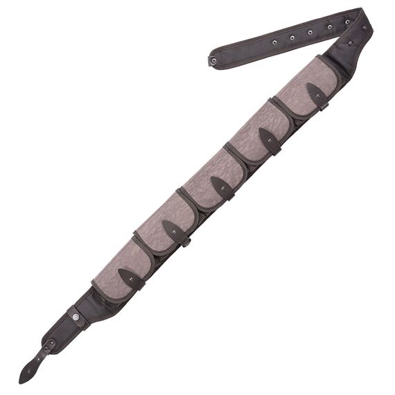 Материал: ткань жатка и натуральная кожа. Лёгкий и удобный патронташ обеспечивает оптимальное распределение нагрузки. Имеет 5 клапанов, которые защищают 30 патронов 12-16 калибра от выпадения и вредного воздействия факторов окружающей среды.