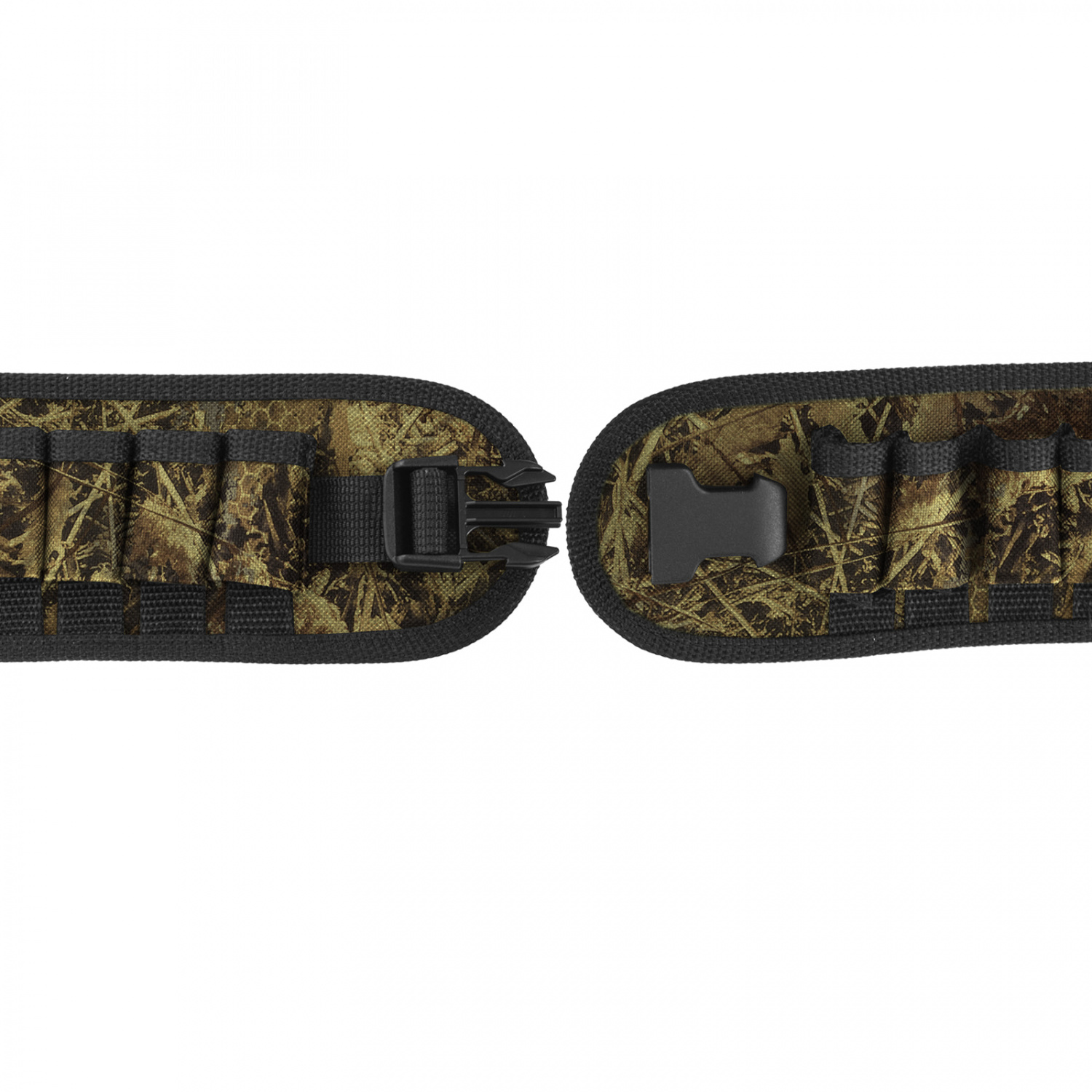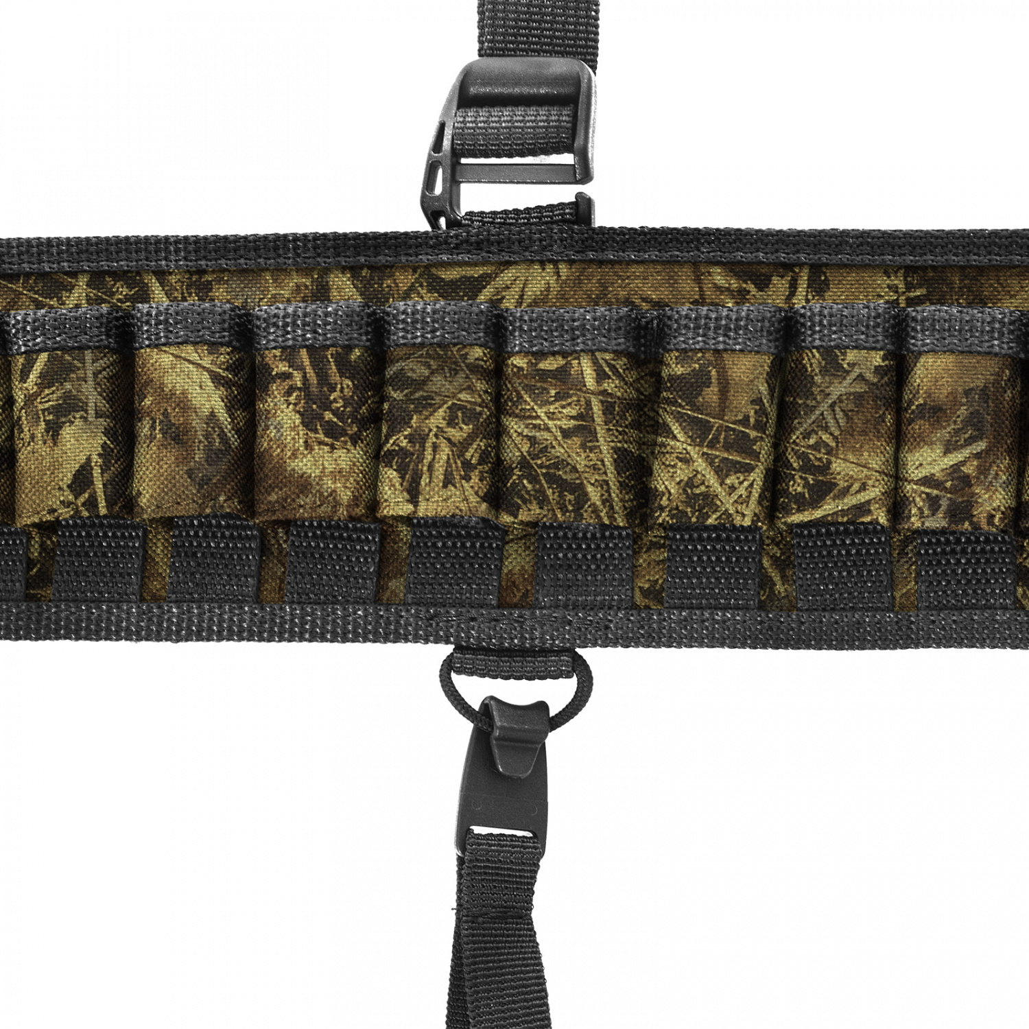 Патронташ изготавливается из особо прочной ткани OXFORD 600D, что обеспечит долгий срок службы изделия. 40 мм застежки удобно при использовании и позволяют быстро снять патронташ.