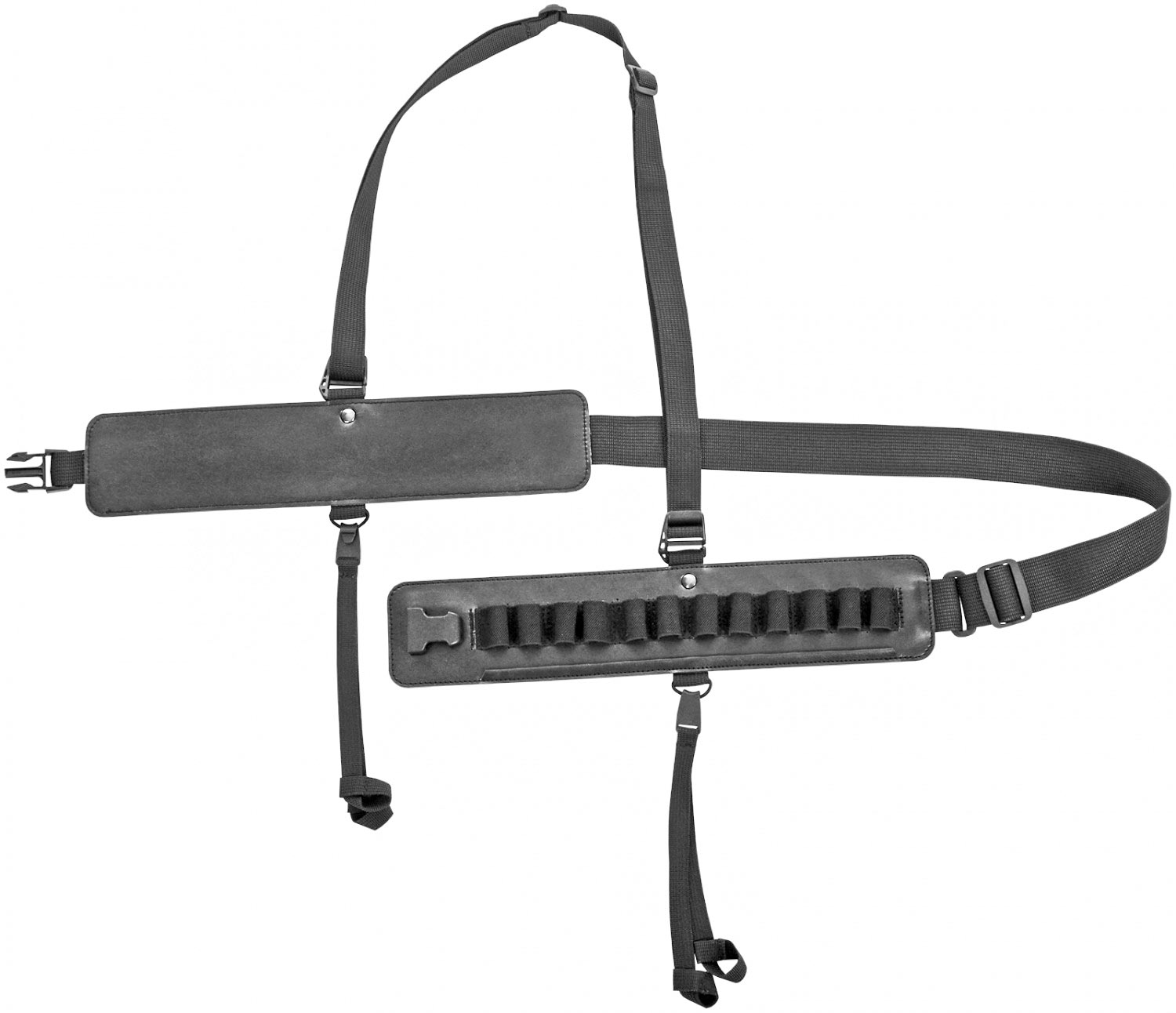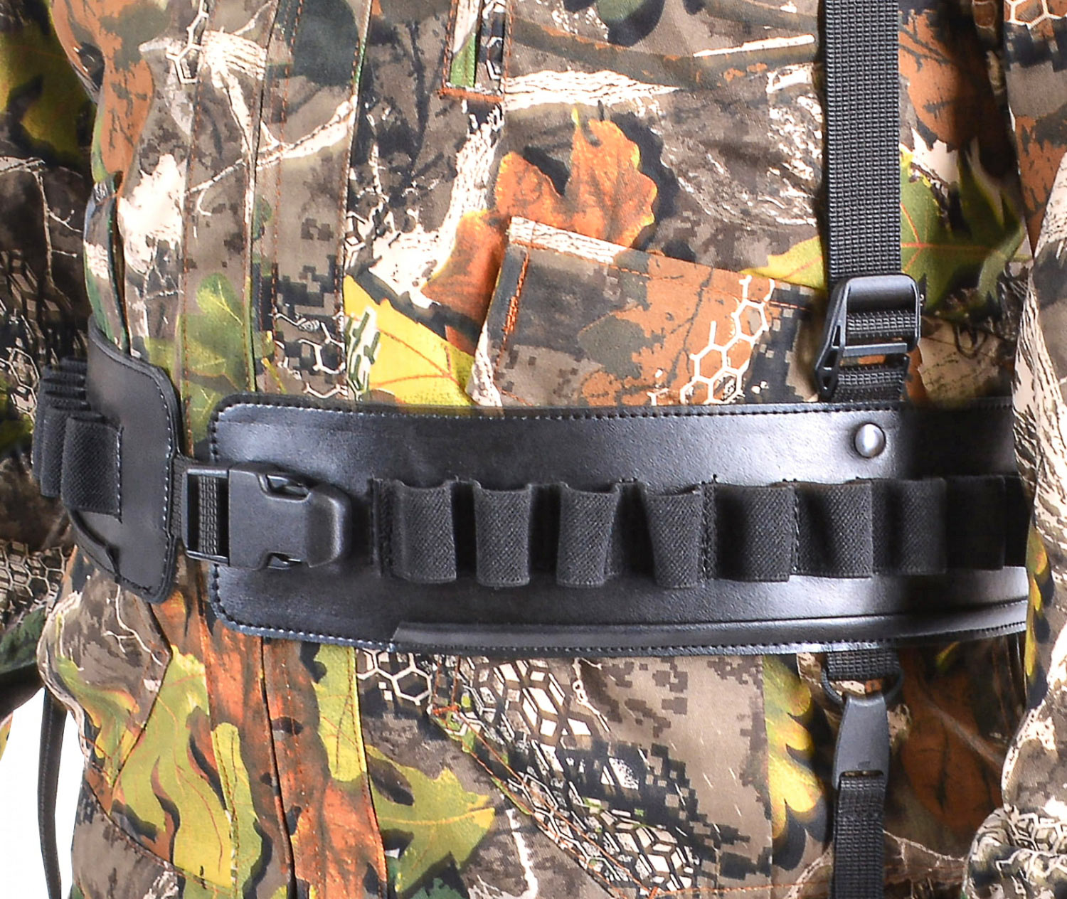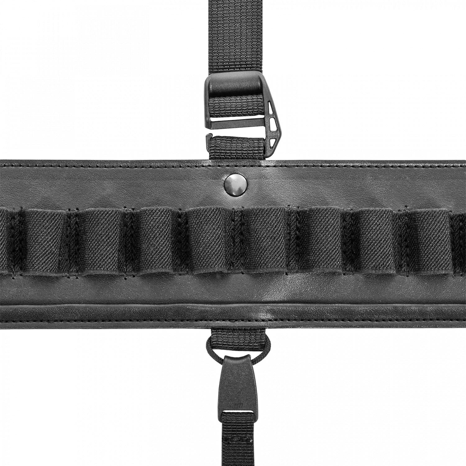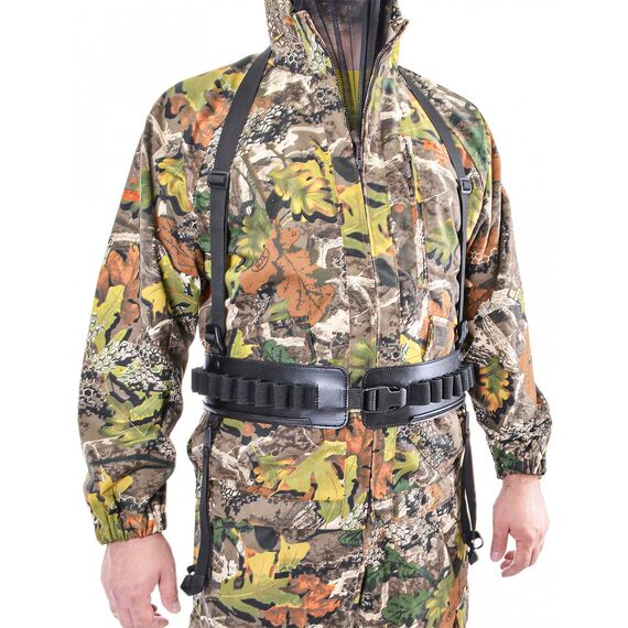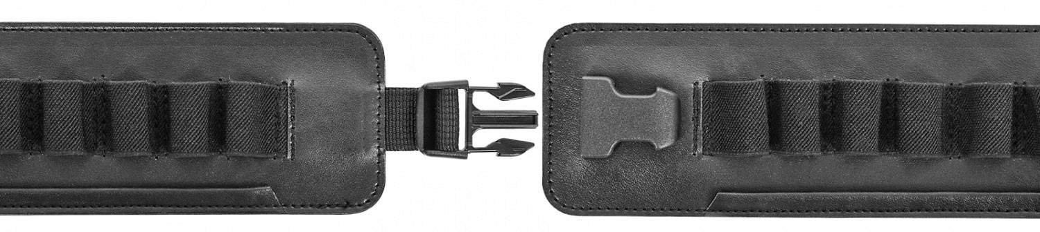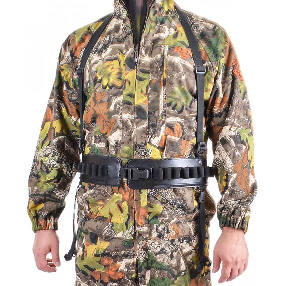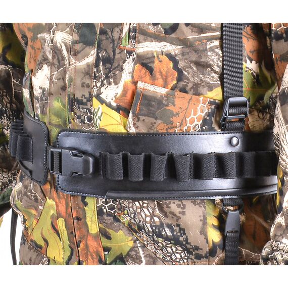 Застежки шириной 40 мм удобны при использовании и позволяют быстро снять патронташ. На патронташе имеются подвесы для дичи, с возможностью разместить добычу. Подвесы при необходимости легко снимаются. Для снижения нагрузки на пояс, патронташ имеет подвесную систему, которая равномерно распределяют вес.