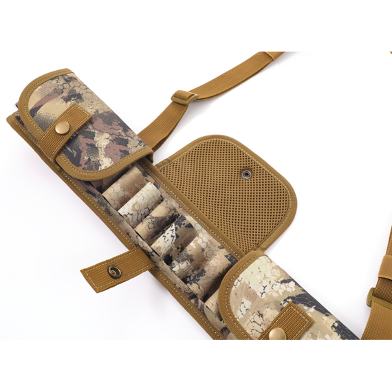 Патронташ, пояс охотника (закрытый) на 24 патрона 16 калибра. Застежки выполнены из натуральной кожи, запирающий шпенек из металла. Материал – кордура. Регулируемый поясной ремень длинной 140 см (патронташ + ремень) и шириной 5 см с фастексом, способным выдержать не менее 50 килограмм на разрыв. Для перераспределения веса на плечи и предотвращения спадание патронташа с области пояса, комплектуется съемной регулируемой подвесной системой. Патронташ - незаменимый аксессуар для охоты, который позволит вам удобно и безопасно хранить и переносить весь необходимый арсенал. Эта функциональная сумка предназначена специально для любителей охоты и снабжена всеми удобствами, чтобы сделать вашу охотничью поездку комфортной и беззаботной.