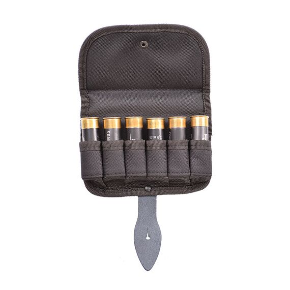 Секция навесная на 6 патронов 12 калибра выполнена из высококачественной водоотталкивающей синтетической ткани и натуральной кожи и предназначена для размещения её на ремне или наборном охотничьем патронташе.