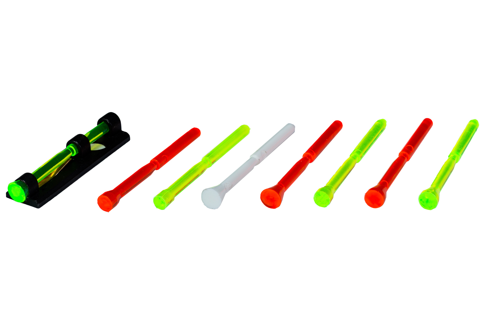 В комплект входят четыре зелёных, три красных и одна белая сменные мушки LitePipe четырёх диаметров.