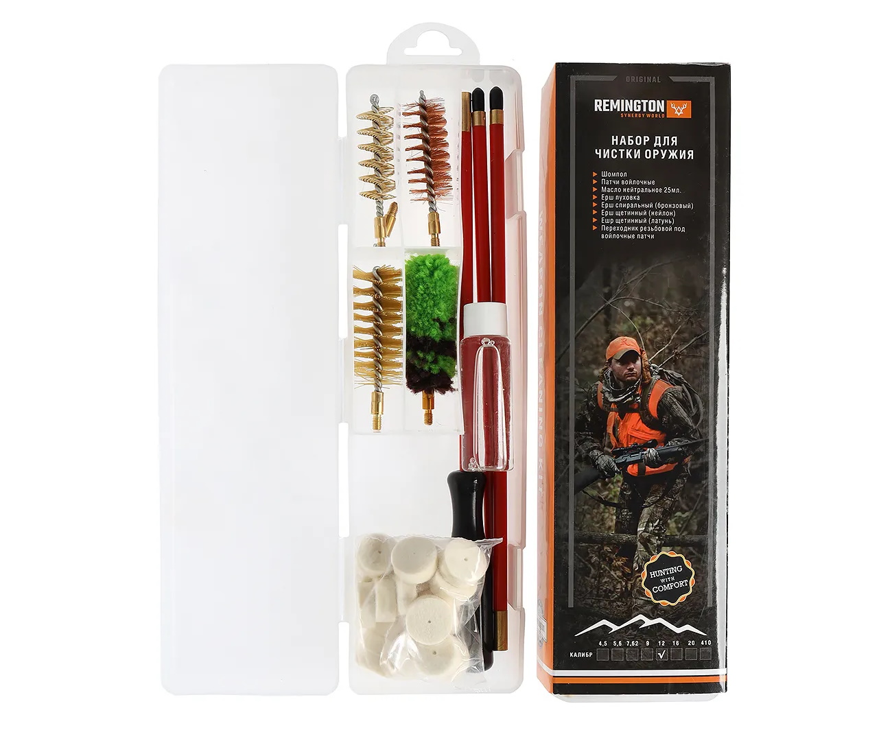 Набор от знаменитого производителя Remington для чистки оружия в калибре 4,5 мм. Для удобства хранения все инструменты сложены в прозрачный пластиковый футляр.