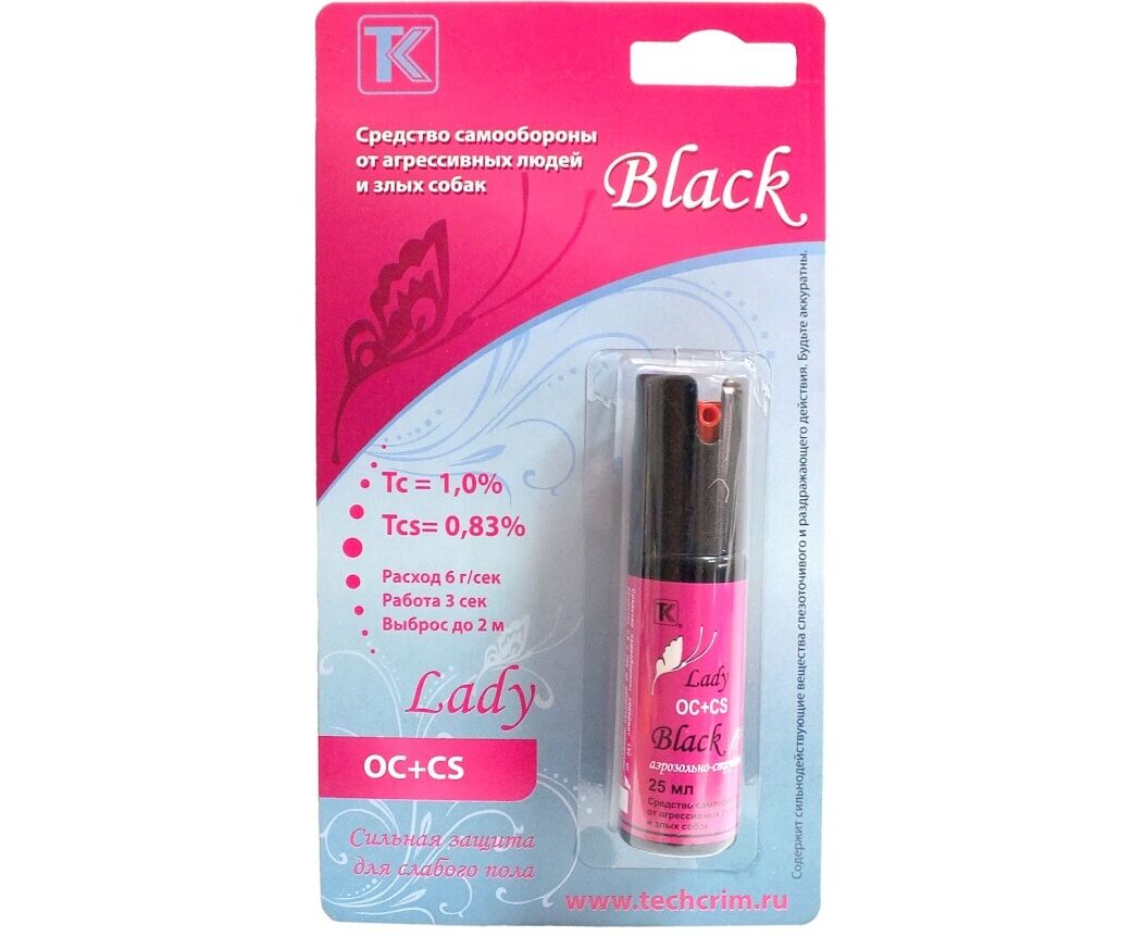 Важнейшей характеристикой «Lady Black», определяющей его популярность, выступает высокоэффективный химический состав. Ирритант включает натуральный перцовый экстракт ОС и слезоточивый газ «Сирень» (CS) - и тот, и другой в максимально допустимой концентрации (Тс: 1%, Тcs: 0,83%).