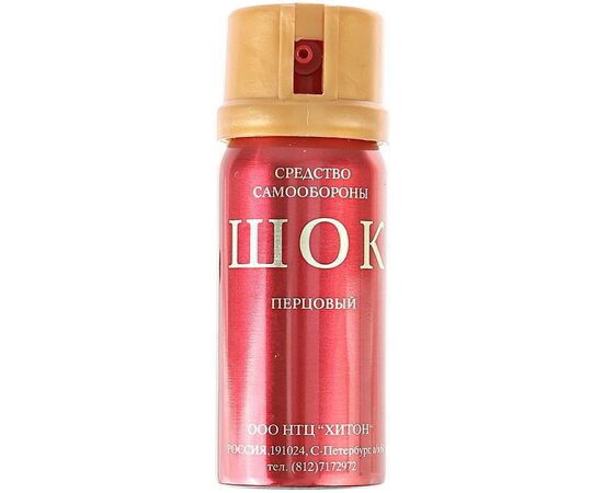 Газовый (перцовый) баллончик Шок, 65 мл является хорошим средством при самообороне от хулиганов либо агрессивных собак. Изделие производится в С-Петербурге НТЦ «Хитон». Еще в 90-е годы 20-го века данное средство являлось лидером среди газовых баллончиков российских производителей.