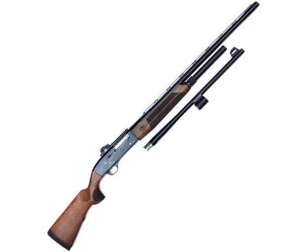 Приклад изготовлен из древесины (орех). С целью увеличения уровня комфорта он оснащается резиновым затыльником-амортизатором, также будут доступны модели, где цевьё и приклад производятся из полимерного материала.