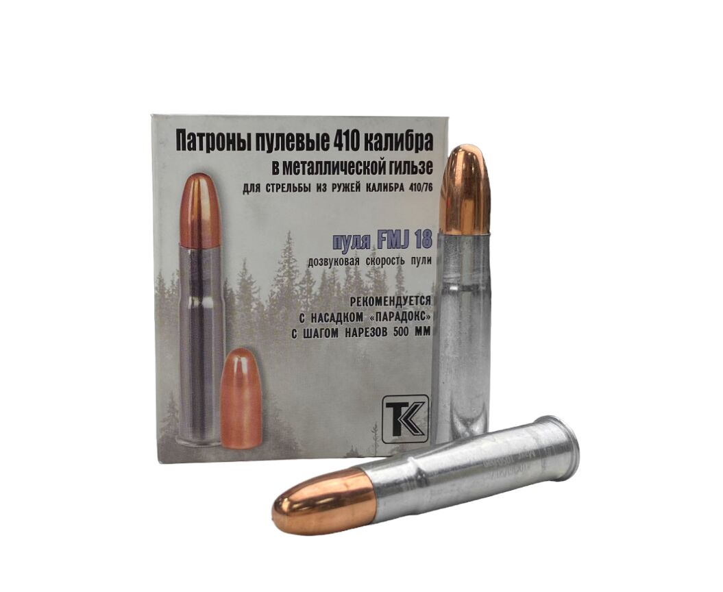 Патроны пулевые калибра 410(36)/50,7 с оболочечной пулей FMJ18 мощные.