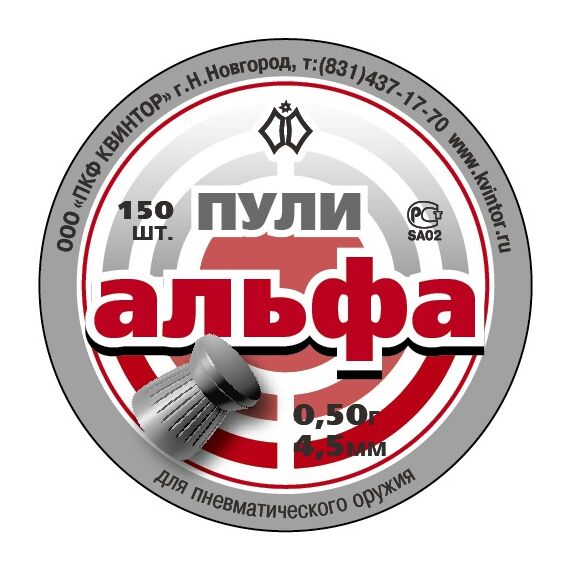 Пули для пневматики Квинтор Альфа кал. 4,5мм, 0,5гр, 150шт