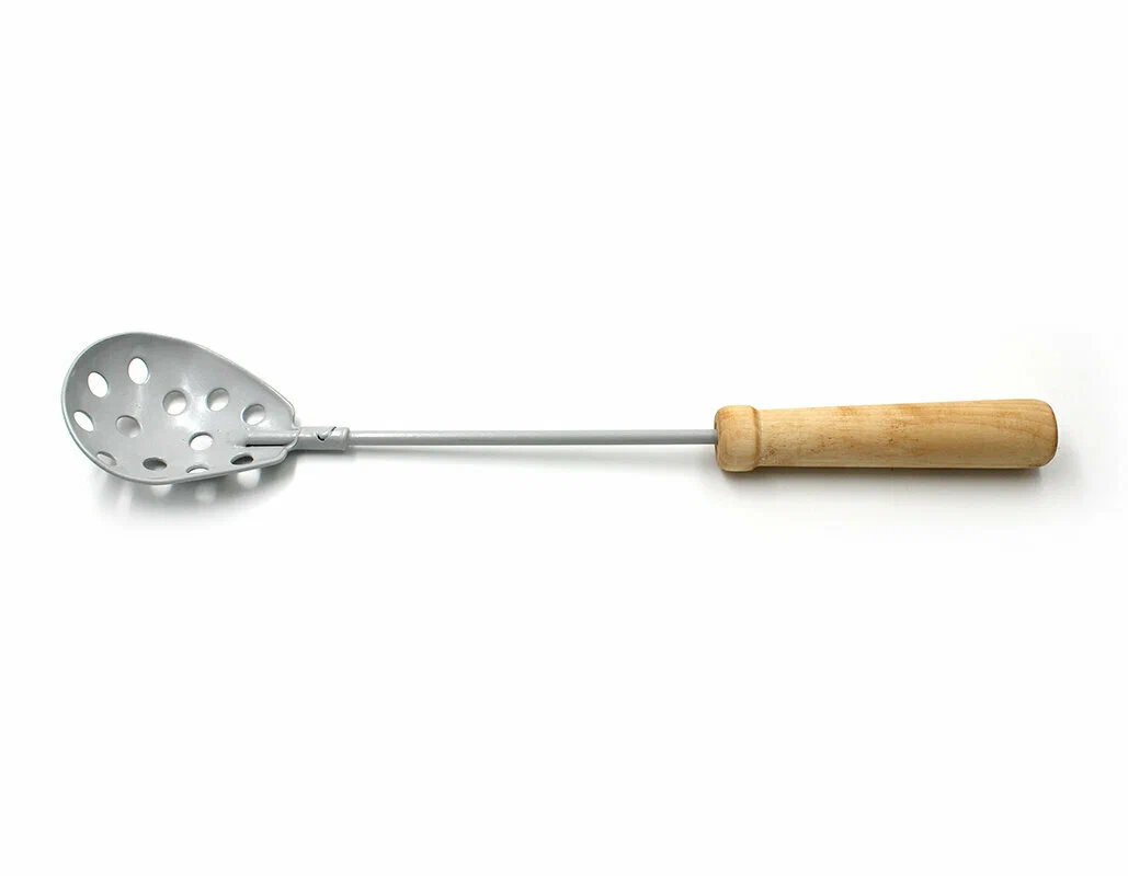 Ложка черпака изготовлена из стали, дополнительно окрашена полимерной порошковой краской. Ручка черпака изготовлена из березы, покрыта специальным защитно-декоративным составом и имеет удобную форму, предотвращающую выскальзывание черпака из рук.