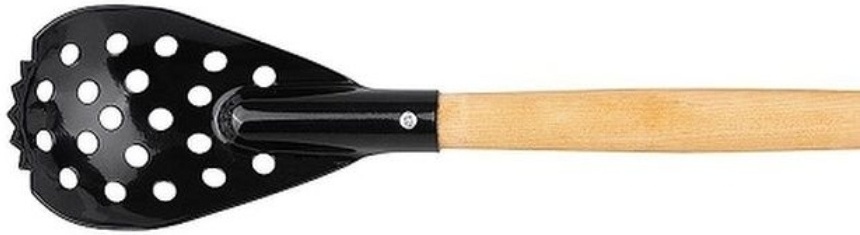 Ручка черпака изготовлена из березы, покрыта специальным защитно-декоративным составом и имеет удобную форму, предотвращающую выскальзывание черпака из рук. Ручка крепится к ложке при помощи шурупа.