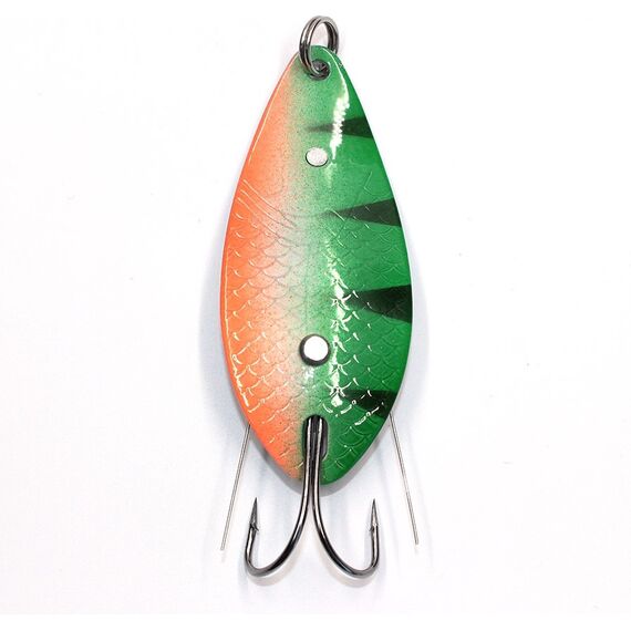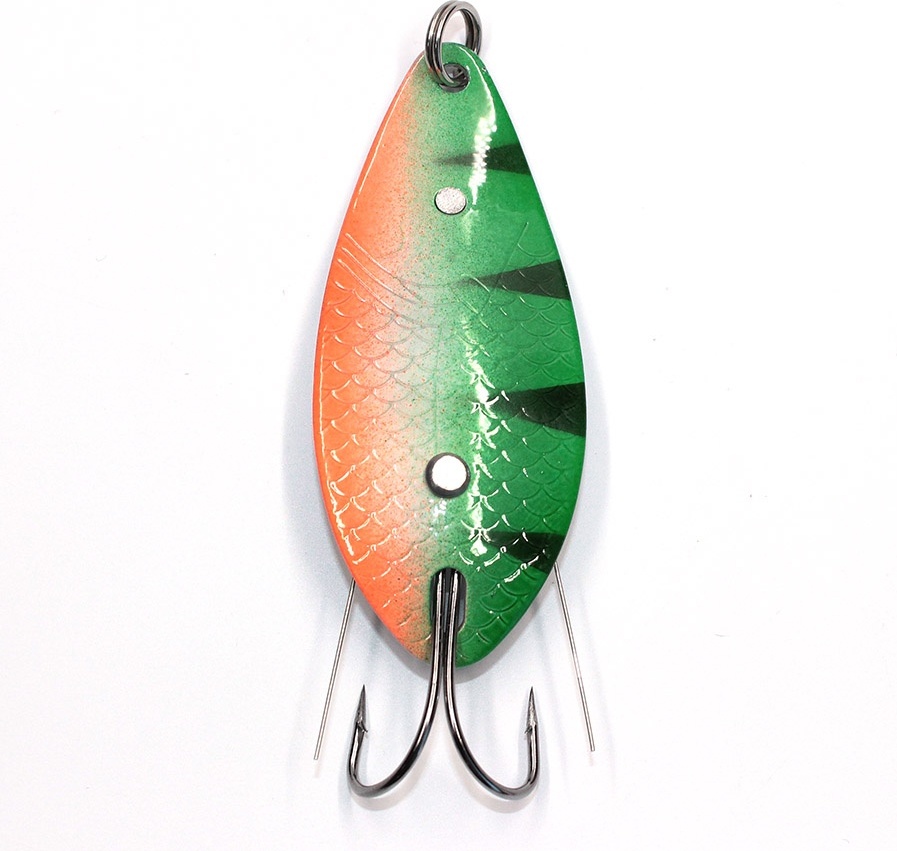 N-Elf - серия блесен-незацепляек для охоты за трофейным хищником. Эксперты бренда Namazu оснастили двойной крючок у данной блесны проволочной защитой, которая прикрывает жала и защищает их от зацепов. Потому с приманкой можно обловить поросшие места, где любит устраивать засады зубастая щука. Колебалка Namazu N-Elf имеет широкую, изогнутую пластину длиной 7,1 см и весом 24 гр. Геометрия обеспечивает амплитудную интенсивную игру даже на неспешной проводке. Солидная масса облегчает выполнение заброса парусящей приманки и помогает погружаться на глубину. Лицевая часть пластины покрыта рифлением, которое напоминает чешую. У моделей с блестящими окрасами оно способствует заманчивым бликам.