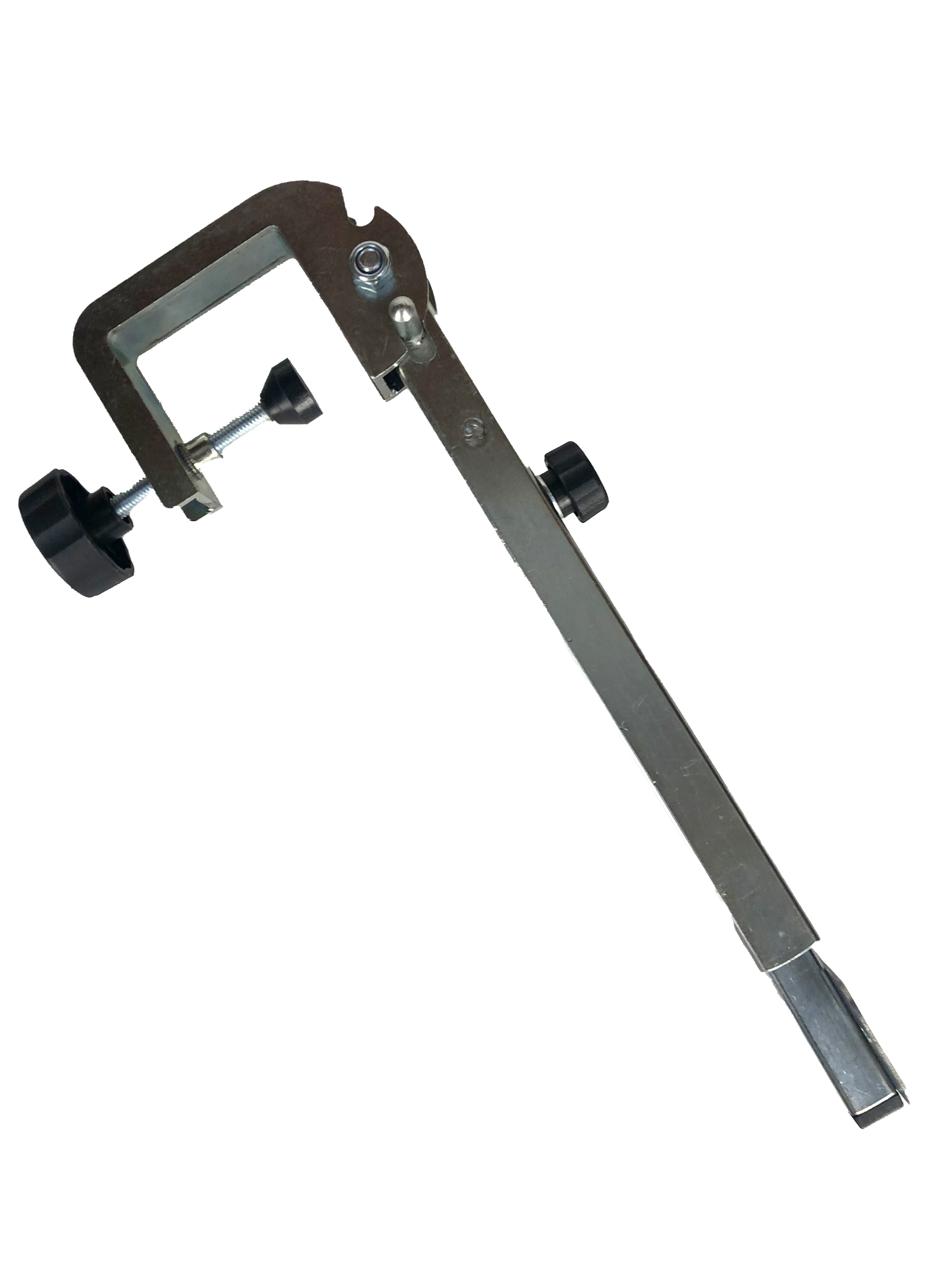 Оцинкованный металлический кронштейн держатель датчика эхолота для лодок с жестким дном. Универсальный, удобный, с откидной ножкой, регулятором глубины и площадной в нижней части, для крепления самого датчика, откуда проводятся провода вдоль ножки и заводятся к самому эхолоту.