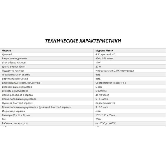 - Подводная видеокамера «Murena Mini»;