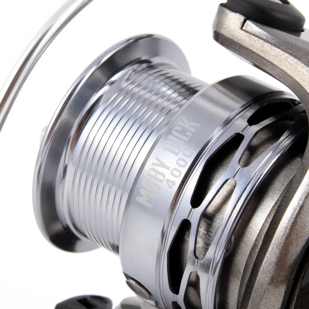 Серия безынерционных катушек с байтранером - Moby Dick. Данная катушка разработана для фидерной ловли, а модели большого размера отлично подходят и для охоты за карпом. Катушки имеют 5 шариковых и 1 роликовый подшипник из нержавеющей стали, мощную тяговую передачу и усиленную рукоять из алюминия. Корпус выполнен из прочного композита. Катушка оснащена алюминиевой, холоднокованной основной шпулей, а также комплектуется дополнительной графитовой шпулей. Большая лесоемкость и надежный механизм позволят использовать данную катушку для охоты за трофейным карпом и сазаном.