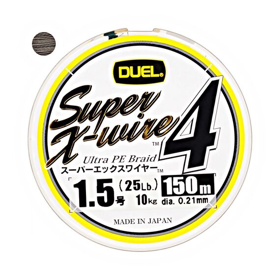 Yo-Zuri/Duel Super X-Wire PE - высококачественный плетеный шнур японского производства. Плетенка изготовлена из волокон современного полиэтилена Ultra PE и имеет плотное четырехжильное плетение. Благодаря плотности плетения волокон шнур имеет сечение, приближенное к круглому. Для большей гладкости на поверхность шнура наносится специальный состав. Это не только обеспечивает более легкое скольжение, но и наделяет Super X-Wire высокой прочностью. Шнур можно использовать для ловли в сложных условиях: в коряжнике и траве, на каменистом или ракушечном дне, а также при отрицательных температурах.