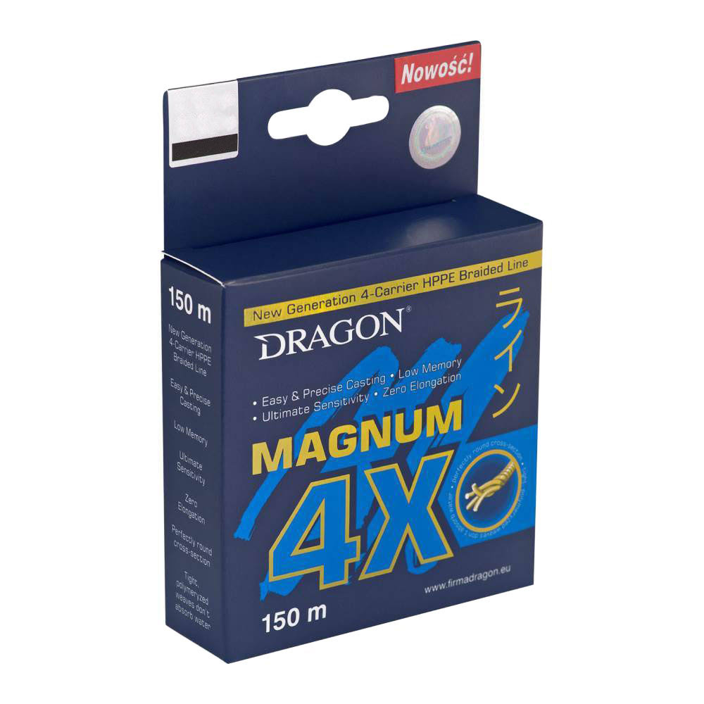 Качественный плетеный шнур Magnum 4X от бренда Dragon имеет широкий спектр применения. Он рекомендован для рыбалки на белого хищника, подойдет для ловли щуки или судака, а тонкие диаметры могут использоваться в рыбалке на окуня или форель. Главными достоинствами серии являются высокая прочность по длине и на узлах, абразивоустойчивость, нулевая растяжимость и высокая чувствительность. Плотное сплетение волокон препятствуют быстрому впитыванию влаги. Гладкая поверхность позволяет дальше и точнее забрасывать приманки.