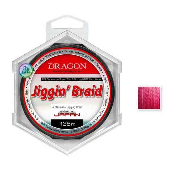 Шнур Jiggin' Braid предназначен в основном для ловли щуки, окуня и судака различными методами, идеально подходит для рыбалки джигговым методом. Последние несколько сезонов подтвердили на практике правомерность использования красного цвета для окраски рыболовных лесок и плетенок. Оттенки красного, отлично видны на поверхности для рыболова, под водой оказались невидимыми для рыб из-за явления исчезновения красного спектра света на несколько метров ниже поверхности. Jiggin' Braid – это именно такая плетенка, идеальная для лови на падении. Дополнительное, тефлоновое покрытие повышает срок службы шнура, предохраняя его поверхность перед механическими повреждениями и неблагоприятными внешними факторами. Цвет красный, размотка 135 м.