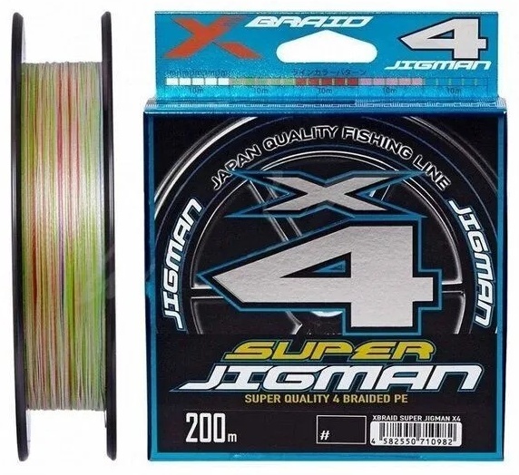 Шнур YGK X-Braid Super Jigman X4 200м 0,148мм 6,35кг мультиколор (0.8PE/14lb)