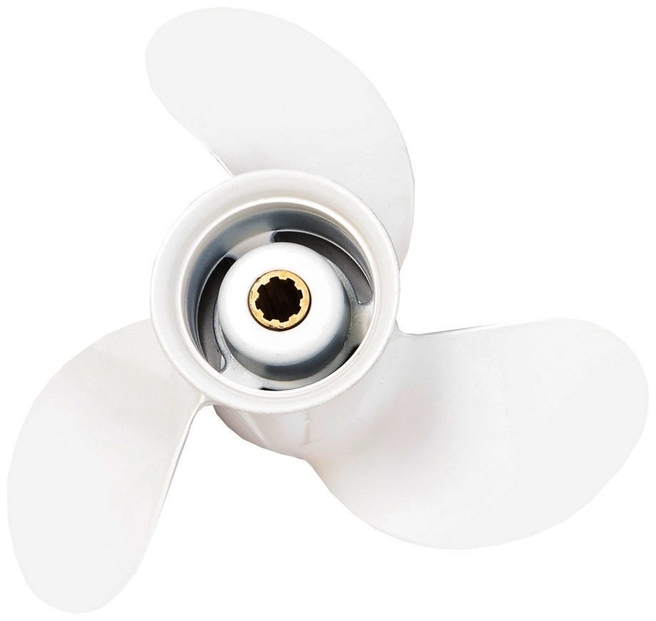 Алюминиевый трехлопастной гребной винт с резиновой втулкой амортизатором для подвесных лодочных моторов Yamaha мощностью 9.9-15 л.с.