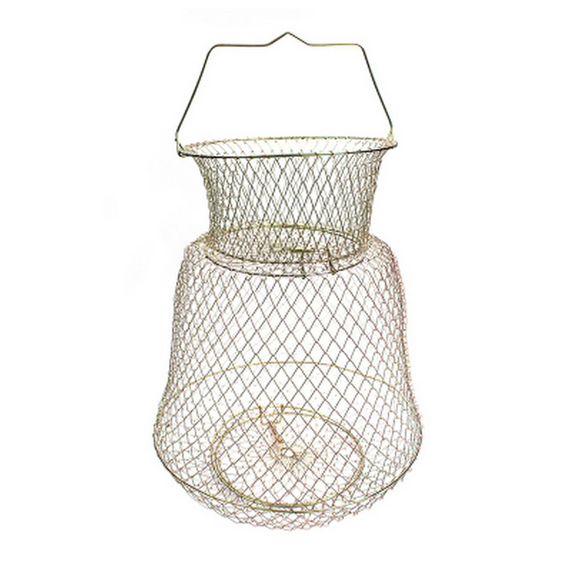 Габариты представленного садка Namazu 38х58см. При этом фактическая глубина равна 46 см, а диаметр большего кольца - 35 см. Весит аксессуар 543 гр. Он изготовлен из антикоррозийной металлической сетки. Она не боится контакта с твердой поверхностью и, в отличие от ткани, не впитывает запахи. Для лучшей сохранности улова крышка и дно подпружинены. Специальная ручка поможет подвесить садок и перенести. Пустой аксессуар можно при транспортировке сложить до более компактных габаритов. Модель подойдет для тех, кто рыбачит с лодки, пристани и т.д.